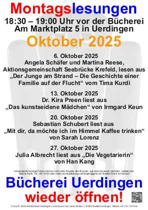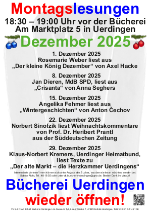 Montagslesungen MontagslesungenDezember 2025 MontagslesungenJanuar 2026 MontagslesungenOktober2025 MontagslesungenNovember 2025 Seiten: 1 2 3 4 5 6 7 8 9 10 11 12 13 14 15 16 17 18 19 20 21 22 23 24 25 26 27 28 29 30 31 32 33 34 35 36 37 38